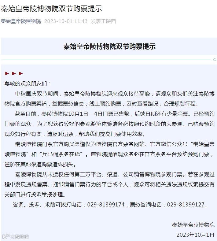 预约量均已到达限量阈值并暂停相关时段的线上线下售票。为确保中秋国庆假日秩序安全、有序,景区从严落实“限量、预约、错峰”措施,现将有关事宜通告如下: