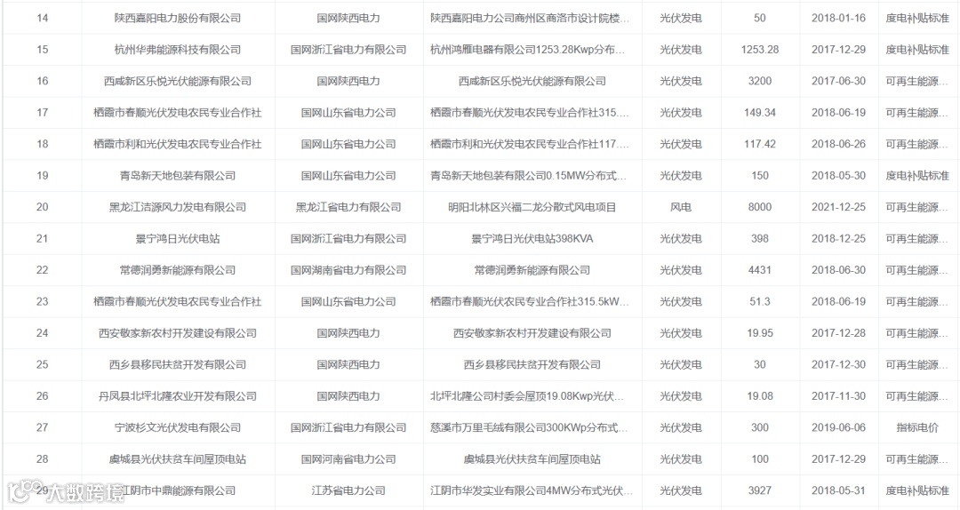 1月15日,新能源云平台发布2025年第一批可再生能源发电补贴项目清单。