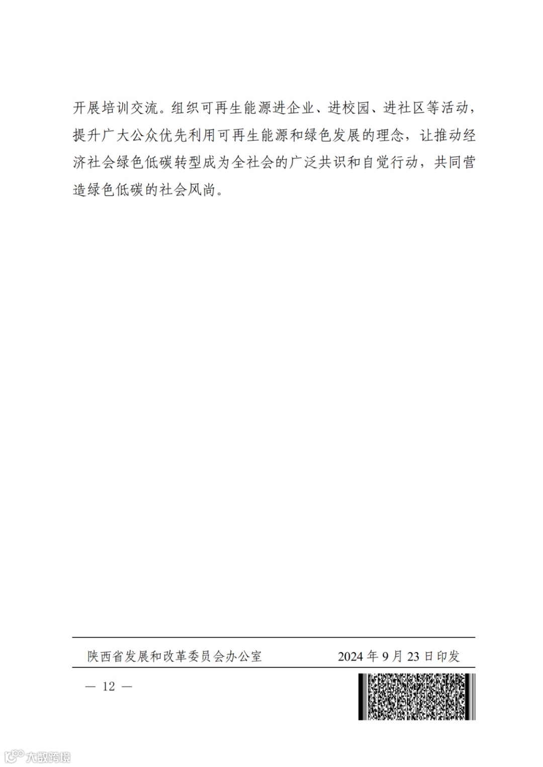 加快推动分布式新能源就近开发。出台促进陕西省屋顶分布式光伏发展的政策措施,按照“条块结合,双计双促”的原则,推动屋顶分布式光伏规模化开发。加快实施陕西省千村万户沐光驭风行动,构建“村里有光伏(风电)、集体增收益、村民得实惠”的可再生能源乡村开发格局。推广西咸新区、交大创新港等BIPV建筑光伏一体化应用技术体系,推动太阳能与建筑深度融合发展,力争新建公共机构建筑、新建厂房屋顶光伏覆盖率达到50%以上。到2026年,全省分布式可再生能源装机达到1500万千瓦。