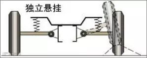 独立悬挂系统是每一侧的车轮都是单独地通过弹性悬挂系统悬挂在车架或车身下面的。
