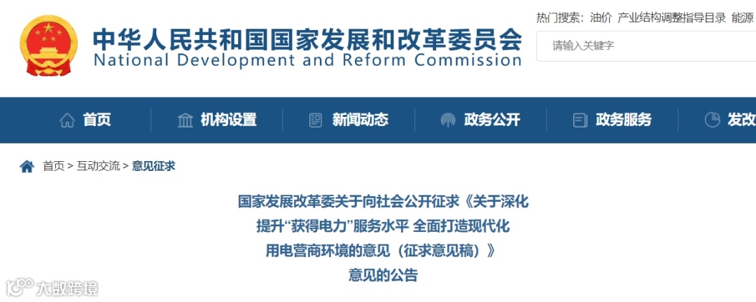 国家发展改革委关于向社会公开征求《关于深化提升“获得电力”服务水平 全面打造现代化用电营商环境的意见(征求意见稿)》意见的公告