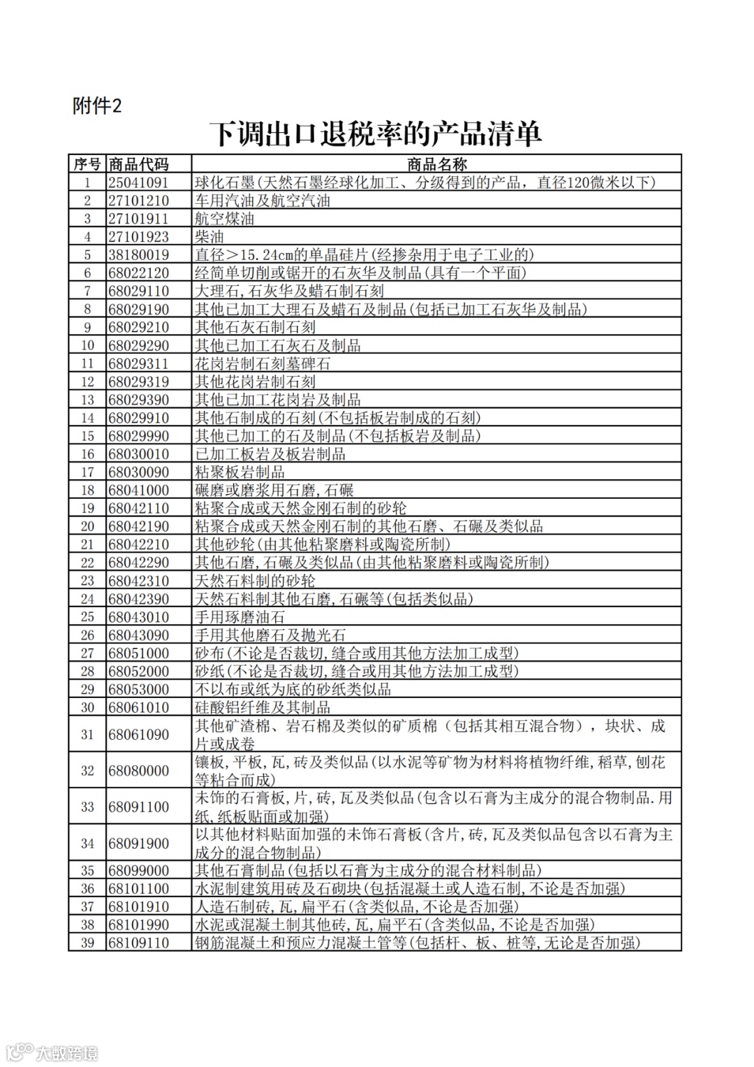 2.下调出口退税率的产品清单