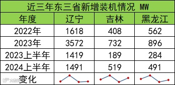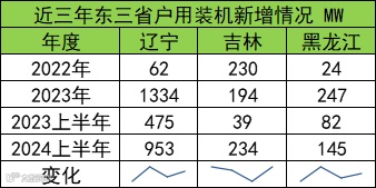 相较于2022年,2023年整体新增装机情况均上调,其中辽宁省新增情况最为明显,吉林省和黑龙江省小幅上升。2024上半年新增情况整体稳步小幅上升。