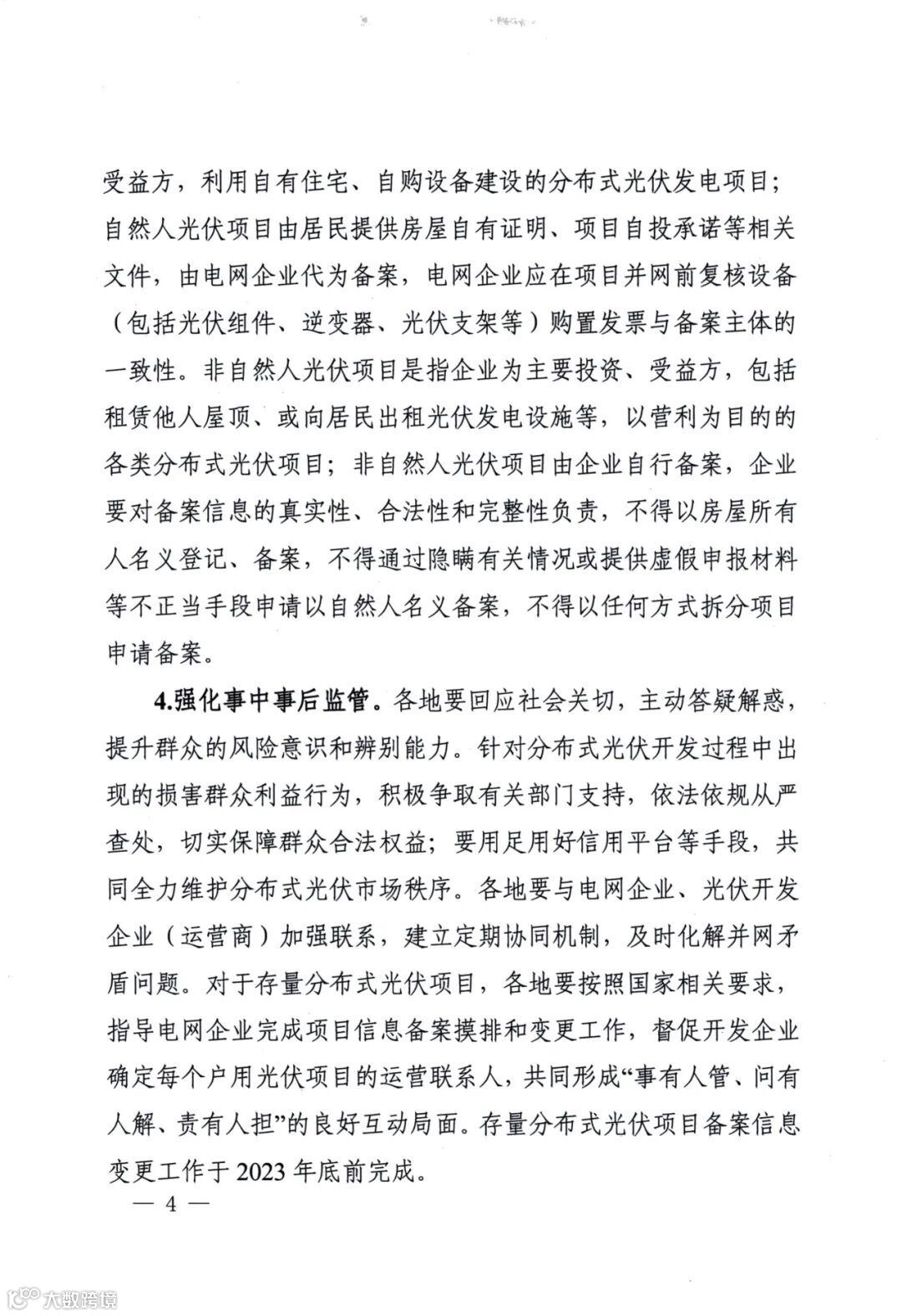 非自然人光伏项目,不得以任何方式拆分项目申请备案。存量分布式光伏项目备案信息变更工作于2023年底前完成。
