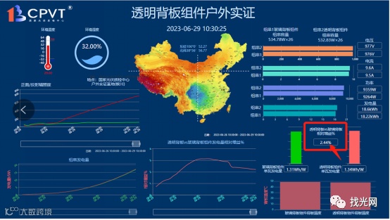 中来新材透明网格背板双面单玻组件比双面双玻组件平均发电量高1.29%(截止到6.29日的最新数据,透明背板组件比玻璃背板组件发电量增益更是高达2.44%)。