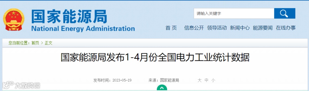 5月19日,国家能源局发布1-4月份全国电力工业统计数据。