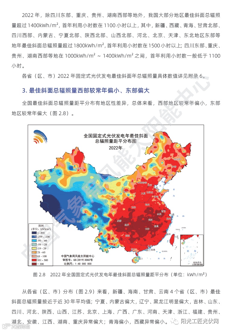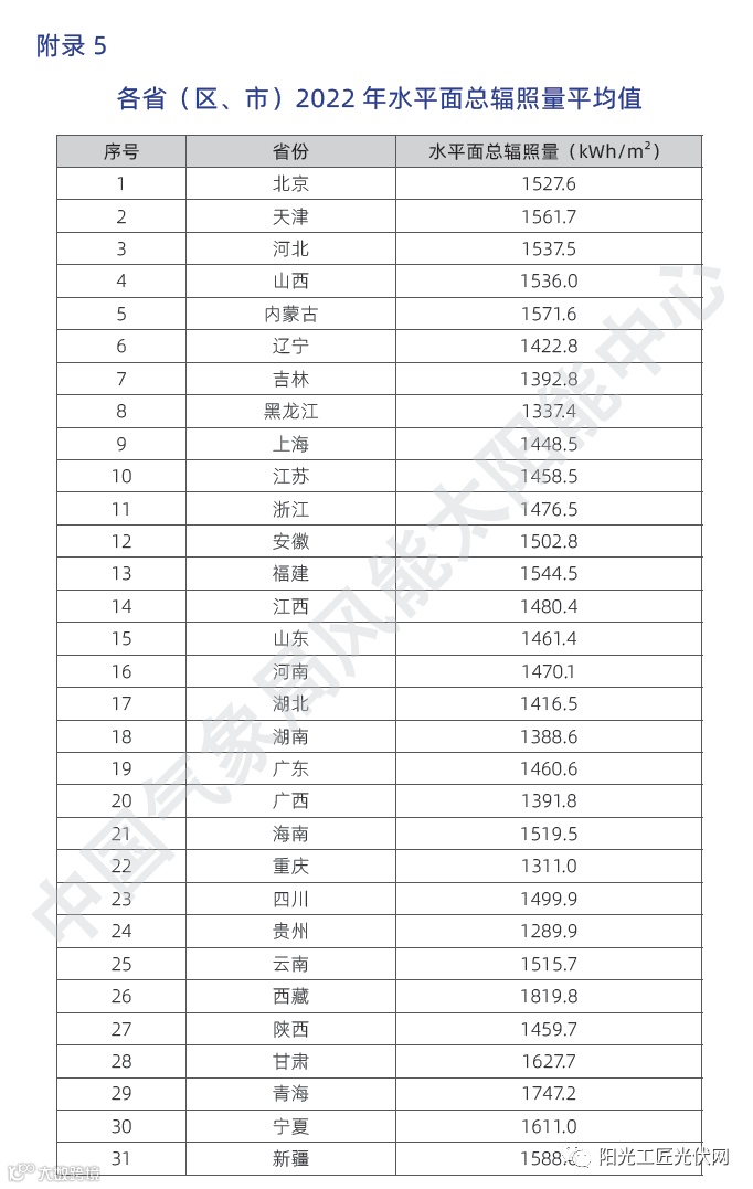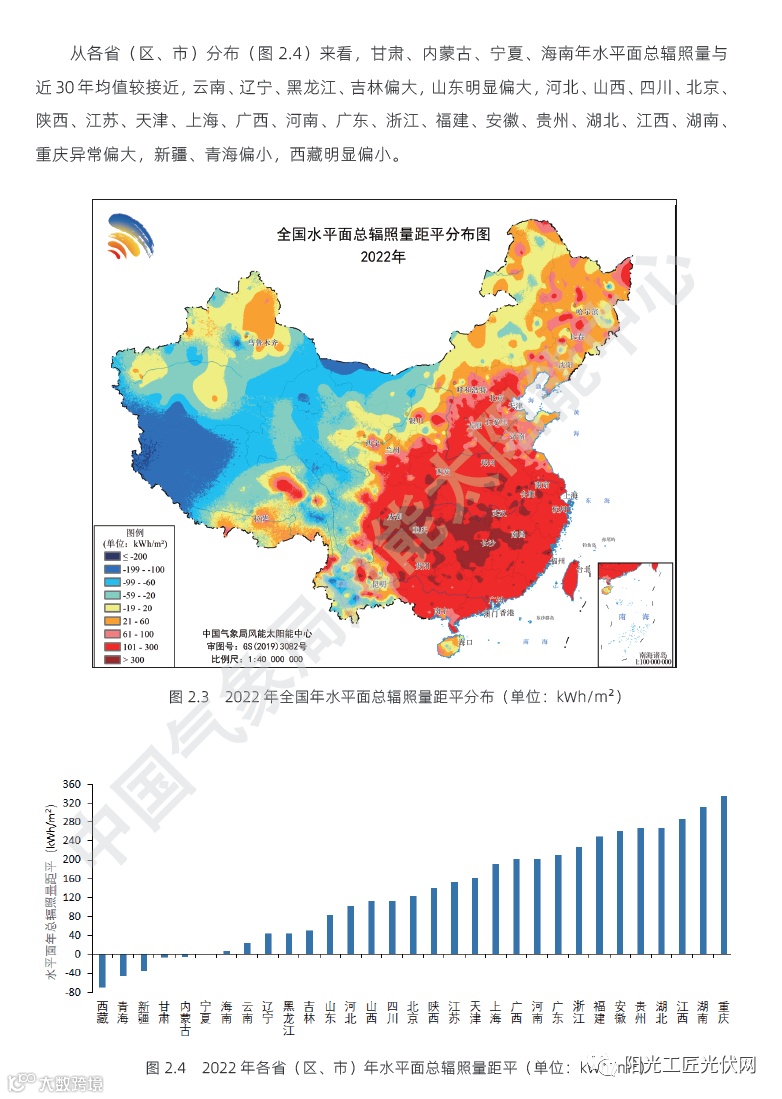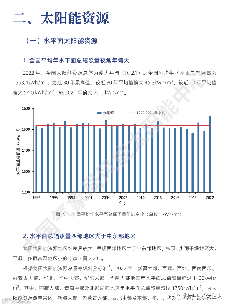 2022年,全国太阳能资源为偏大年景。