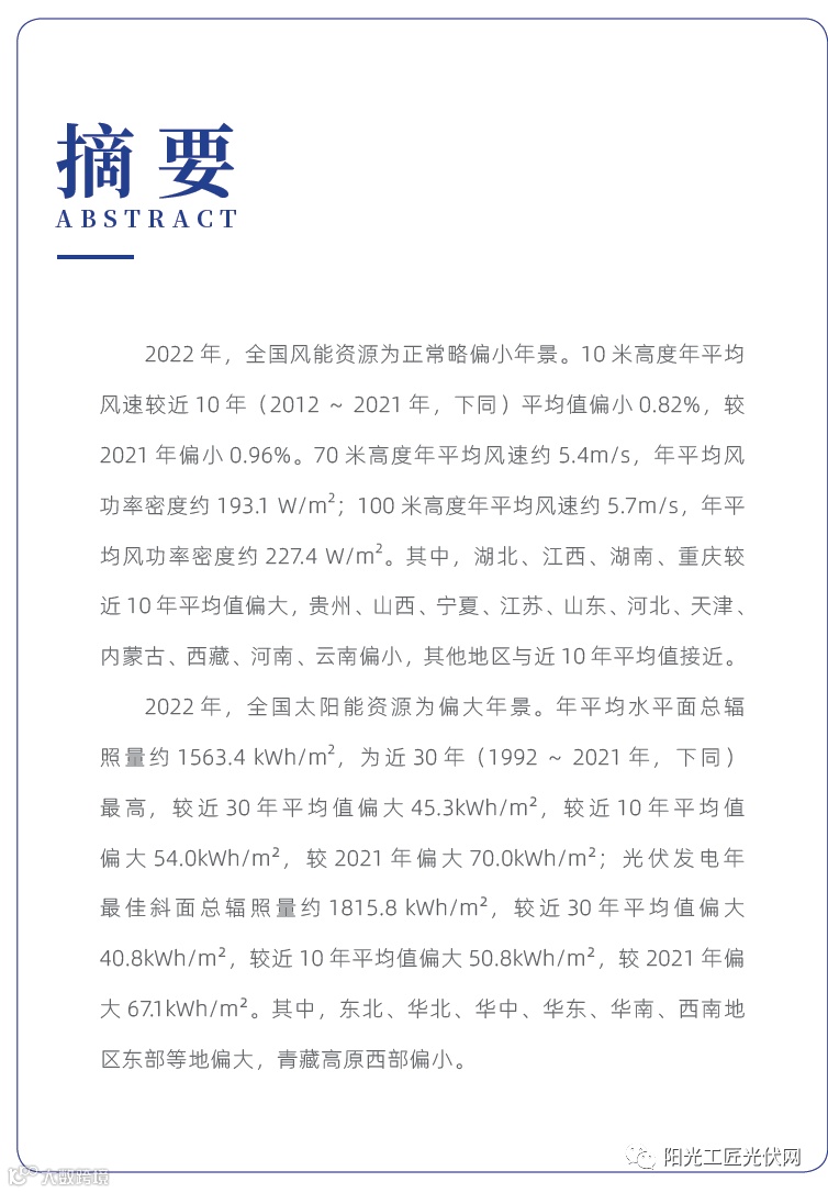 找光网近日,中国气象局公布了《2022年中国风能太阳能资源年景公报》。