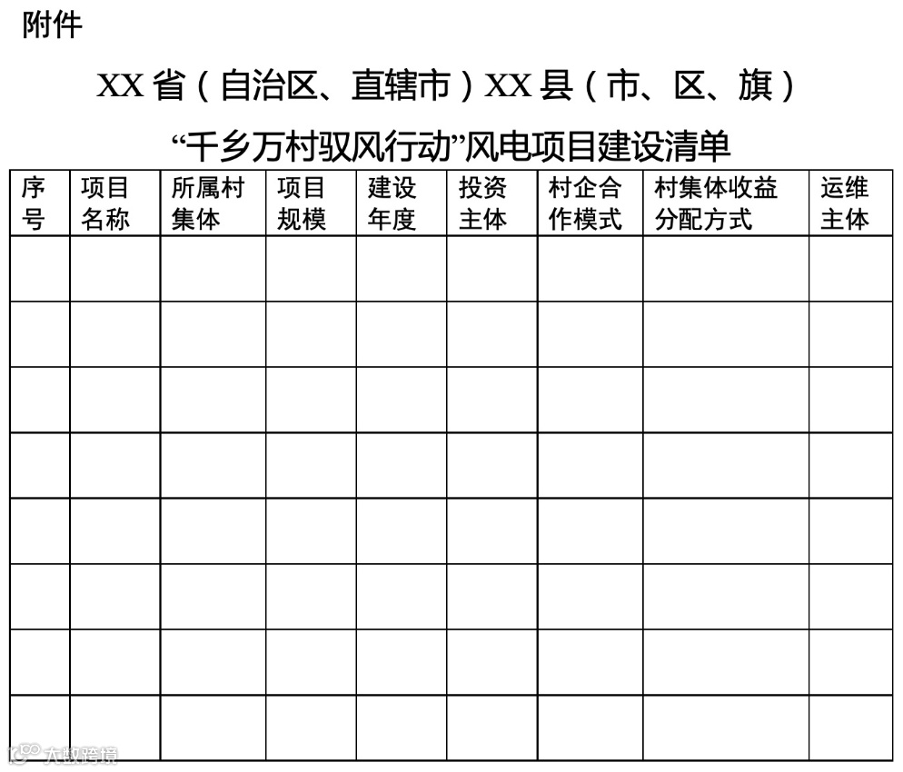 为规范有序推进“千乡万村驭风行动”,我们研究提出《省(自治区、直辖市)“千乡万村驭风行动”总体方案编制大纲》,现印送给你们,请参照执行。国家能源主管部门将建立定期调度机制,全面监管乡村风电项目实施过程。