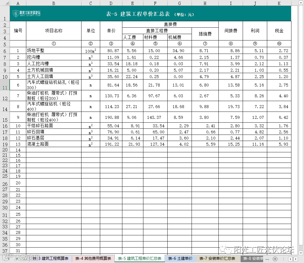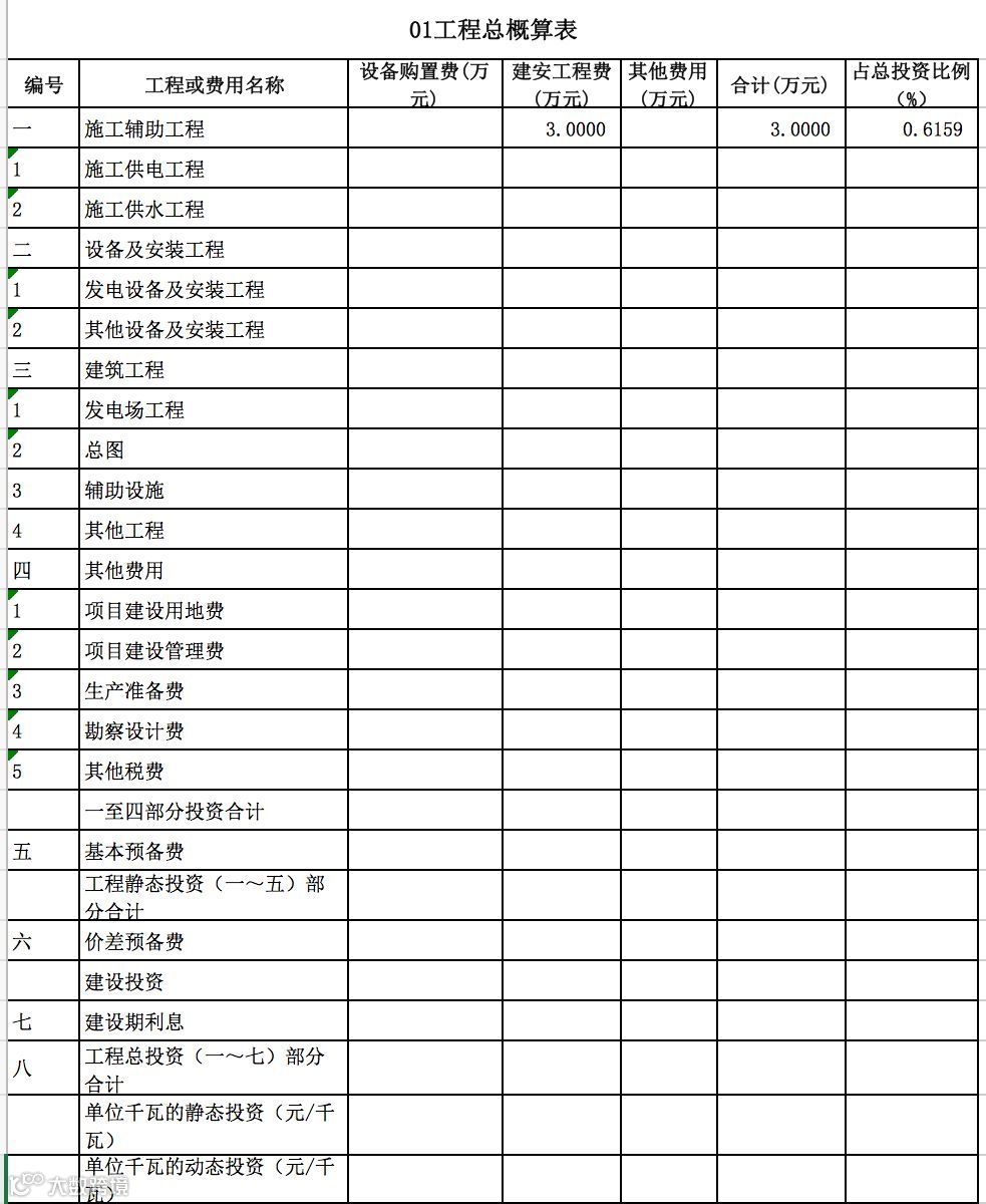 包含:发电厂区工程、变电站工程、房屋工程、交通工程等费用。如下表所示。