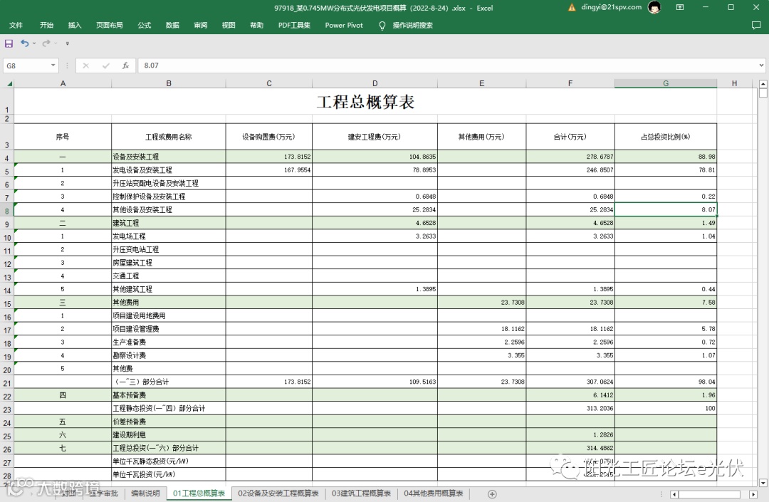 二、2022年8月项目实例(某0.745MW分布式光伏发电项目概算)
