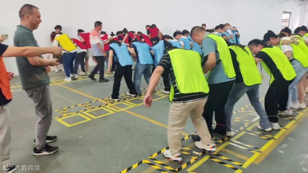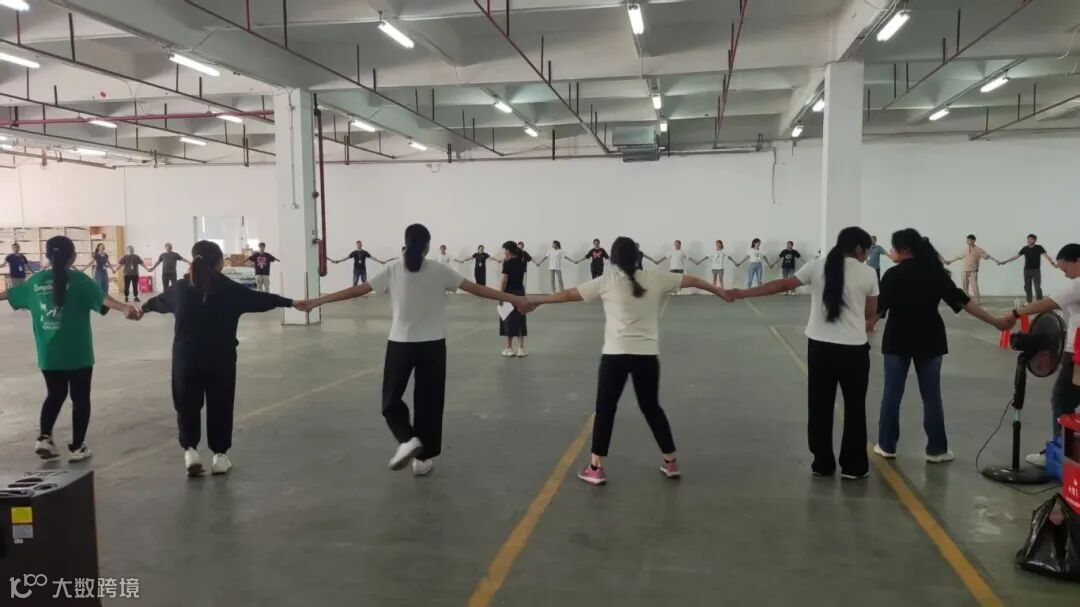 分组结束后,一场别开生面的集体热身活动拉开了欢乐的序幕。六十余名员工手拉手围成一个巨大的圆圈,共同参与“击掌传花”游戏。随着一声清脆的哨响,大家默契配合,侧身向后仰,整个圆圈宛如一朵徐徐绽放的绚丽花朵,现场气氛瞬间被点燃,欢声笑语回荡在每一个角落。
