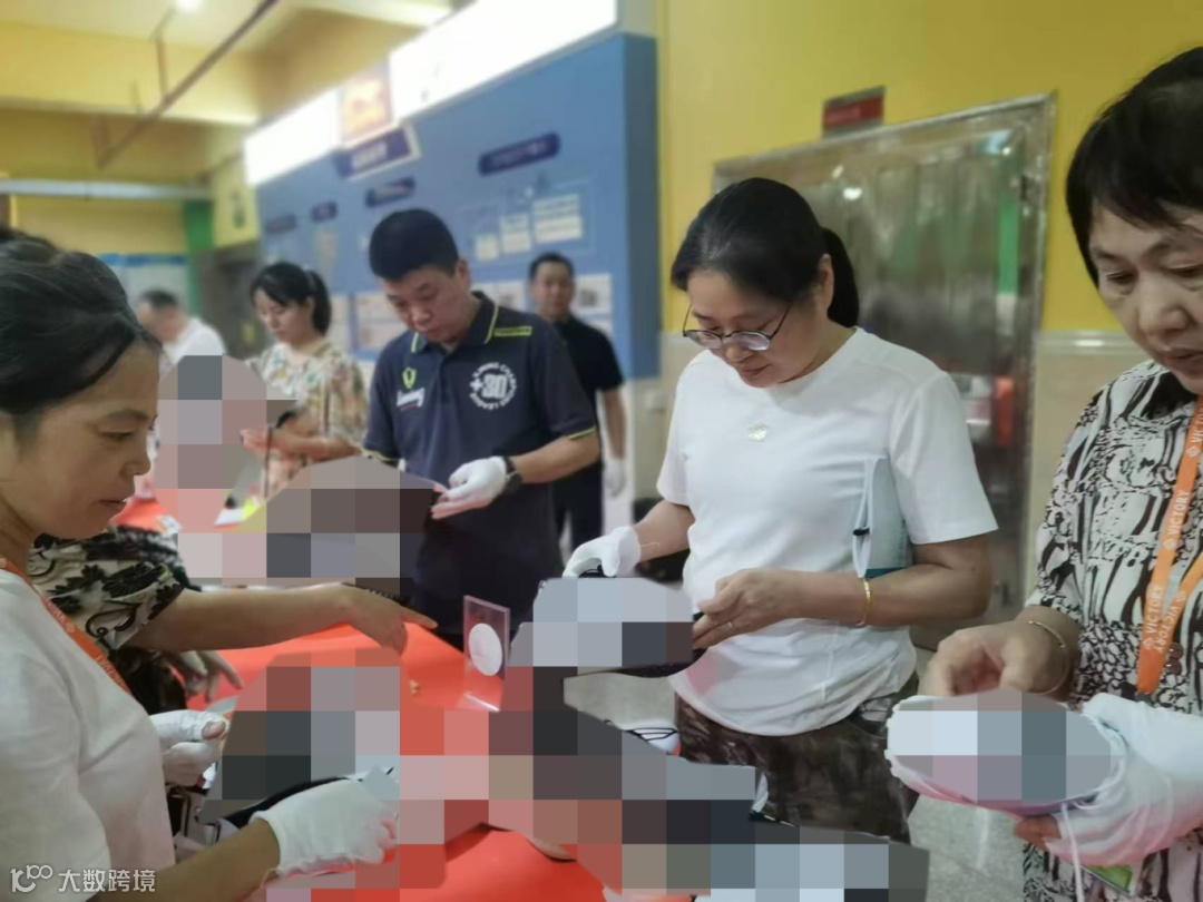 紧接着,桃源一厂B栋敬协理和总公司MQA对每双参赛鞋子进行仔细检验,标记不良问题点,并登记不良数量。