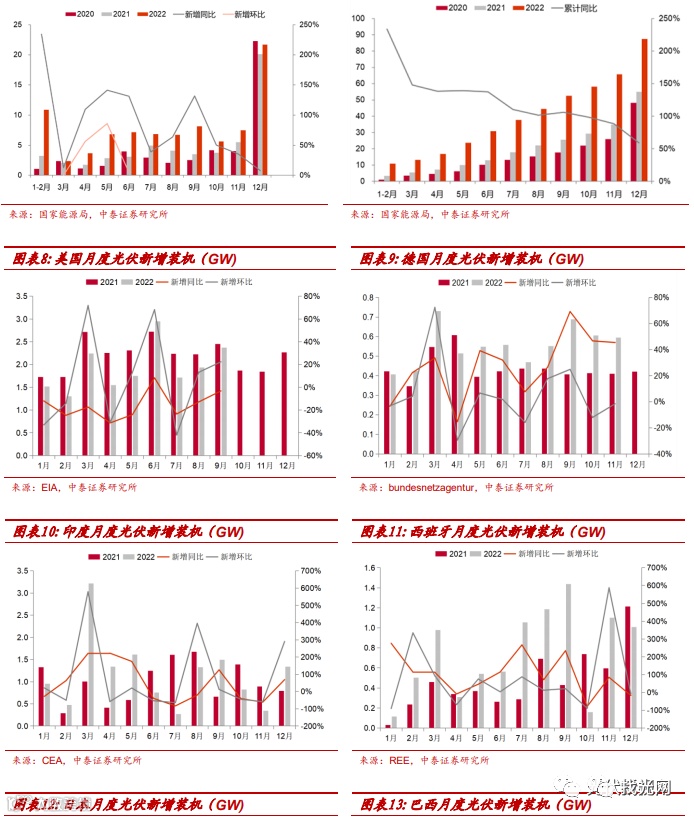 随着组件价格的回落,大基地项目的加速推进,延期集中式需求将在2023年上半年陆续启动,国内光伏市场有望延续高增长态势。
