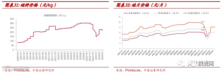 硅料:价格进一步下行,销售节于常态化。本同多品硅致密料价格下降到220元/kg,与上周环比-1.8%。