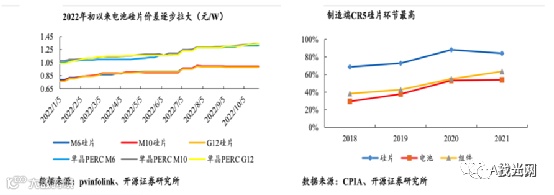 竞争格局:随着硅料产能释放,硅片和组件产能将整体供应过剩。而硅片环节竞争格局相对较好,预计较好的竞争格局将保障硅片维持较好单瓦盈利。
