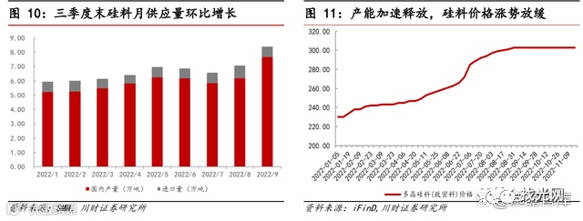 产业链方面,进入四季度,硅料供给逐月环比提升,预计四季度硅料产量较三季度增长40%左右,硅料供应紧张的局面逐步缓解,