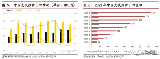 海外方面,受欧洲能源危机、疫情反复、通胀加剧等因素影响,海外光伏装机需求大超预期,光伏产品出口实现大幅增长。