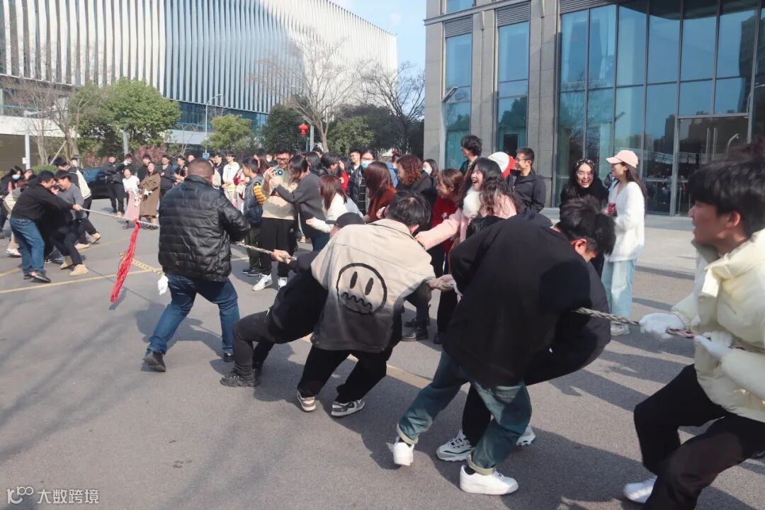新春开工拔河比赛是纬诚一直以来的传统。全体员工齐聚楼外,参赛队伍整齐亮相,随着裁判的一声令下,场上加油声、号子声此起彼伏,将现场氛围推向了高潮。