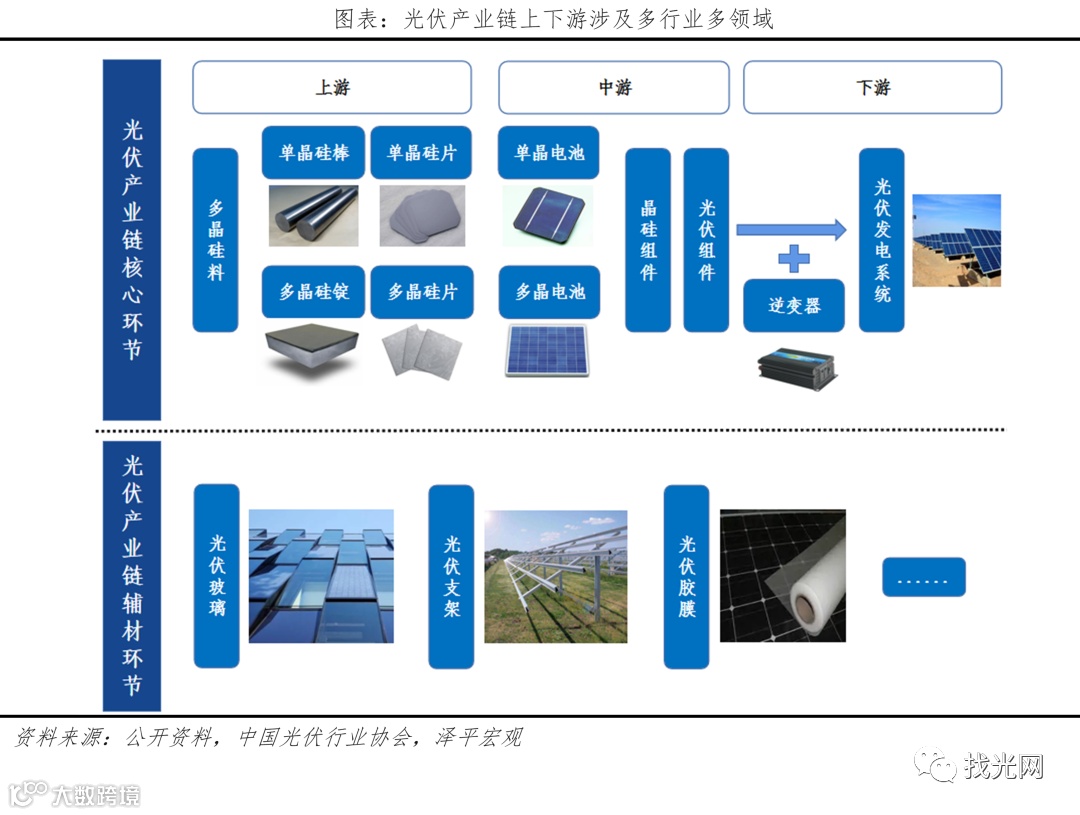 光伏产业将半导体技术与新能源需求相结合,其产业链上下游涉及广泛,内涵丰富。
