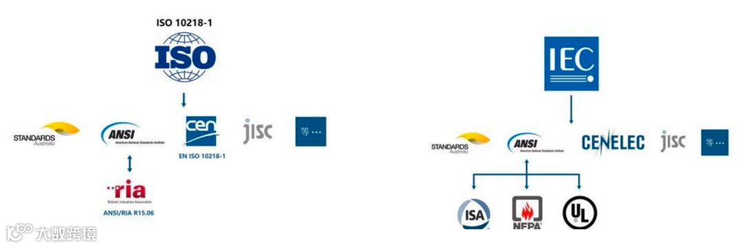 立法和治理体系上,第三次工业革命中已经发展到了系统化、规范化、国际化的阶段,这一时期,工业化的后发国家在立法和治理上也会逐渐往这个方向发展。系统化、规范化的立法和治理体系,以美国体系、欧盟体系为代表,其框架体系如图1、图2所示。国际化的标准体系也逐渐完善,如机械、电气方面的标准有了国际的ISO标准、IEC标准,各国的标准基本遵循国际的标准框架,如图3所示。