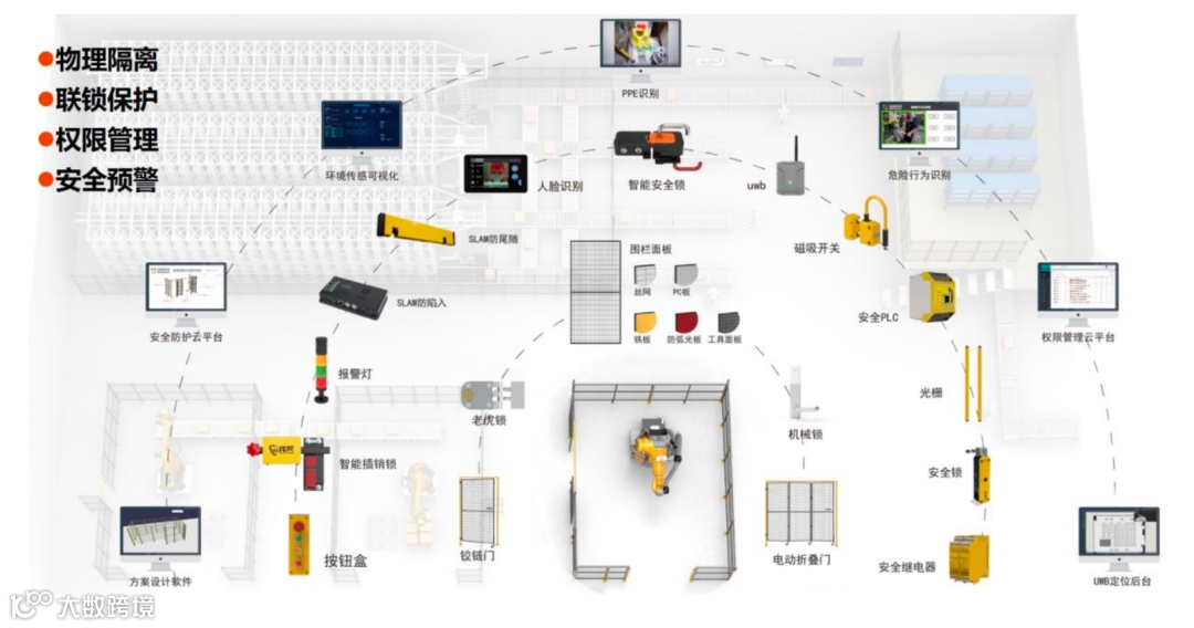 智能工厂的安全防护系统设计应遵循两大原则,一是充分考虑标准符合性,二是兼顾适用性与可迭代性。其中,标准符合性是安全防护类产品方案设计遵循的首要原则。同时,工厂的智能化往往有一个过程。智能化改造的项目一般从精益化、数字化向智能化升级,不同的物流环节可能处于不同的阶段。新建的智能工厂项目,也有可能不是一步到位实现智能化的。因此,无论是改造项目还是新建项目的安全防护系统设计,都要兼顾方案当前的适用性与未来的可迭代性。