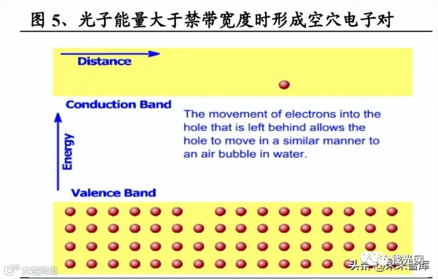 “光生伏特”效应指的是半导体在受到光照的条件下,光子能量激发价带内的束缚电子穿过禁带到达导带成为自由电子,并在价带中留下空穴,形成为空穴电子对,从而改变了材料的载流子浓度。