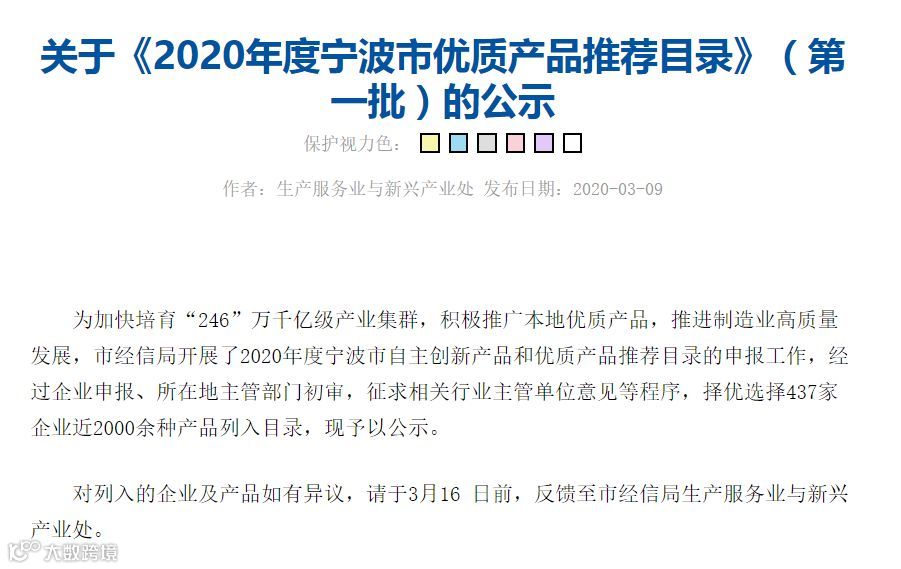 本次入选宁波市优质产品推荐目录,必将进一步推动公司自主创新、自主研发的进程,公司将继续引入高素质人才、继续加大科研投入,为企业持续、健康、快速发展提供强有力的技术支撑。