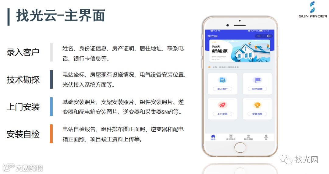 联合开发、并举发展的时代,北京找光网能源科技有限公司开始在新能源方面奋起发力,利用自主研发的“找光云”小程序为广大农户和繁多的屋顶应用场景带来一站式全场景光伏系统解决方案,