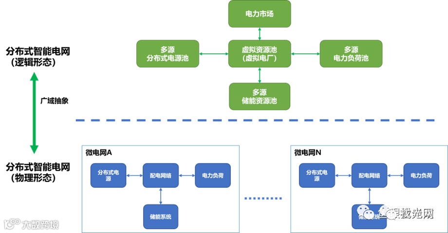 这个Energy,可以是分布式电力,也可以是柔性负荷,汇聚起来就是VPP的形态。因此,分布式智能电网的逻辑内涵,是把分散在电力网络各个地方的小微资源,