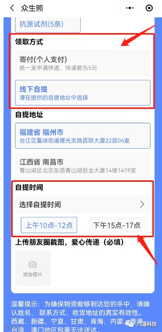 (1)快递寄付:统一发申通快递,快递费为5元。领取物资发出后会由公众号统一发出公告,请大家多多注意消息(因地区限制,西藏、新疆、宁夏、甘肃、青海、内蒙古、港澳台等地区不能邮寄);