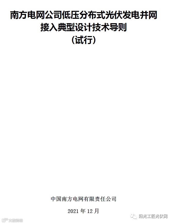 内容主要包括两个部分:《南方电网公司低压分布式光伏发电并网接入典型设计技术导则》以及《低压分布式光伏发电并网接入典型设计图集》。