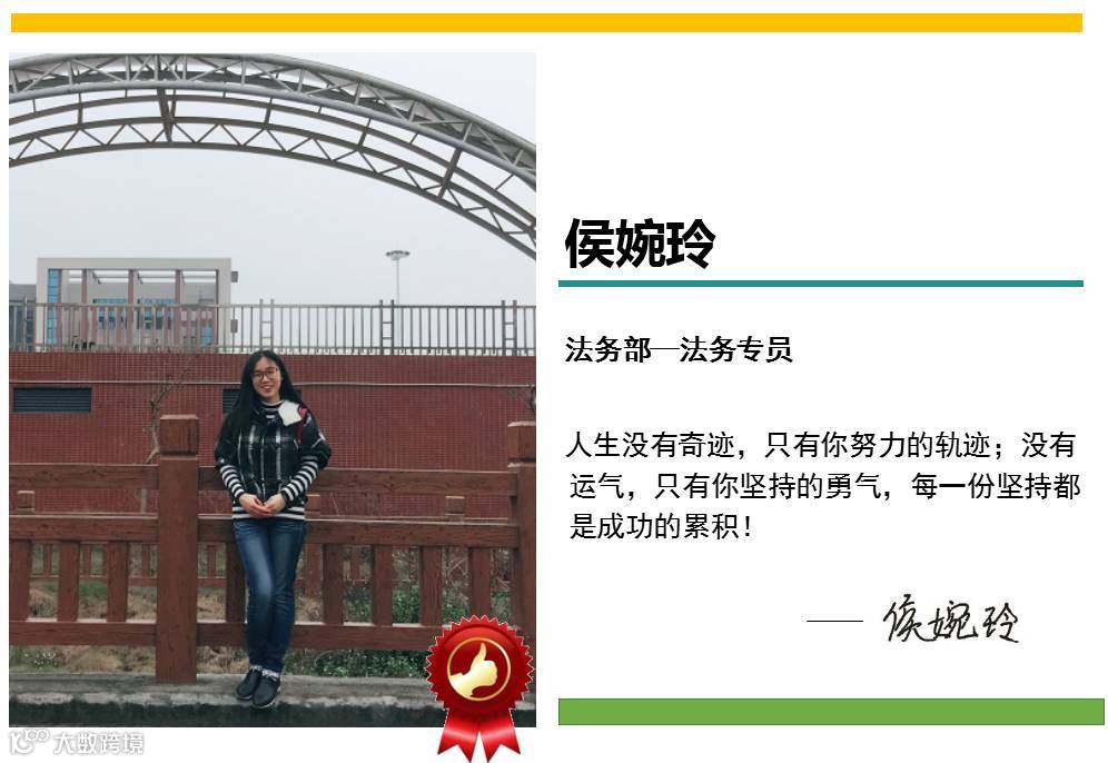 她,作为法务部的一位同事,虽然无法像前端同事一样纵横市场,但在后端却也能时刻感受到合同双方在利益上的权衡与博弈。她,就是这样一个奋斗,成长,高效,专业,有责任心的三盟人。