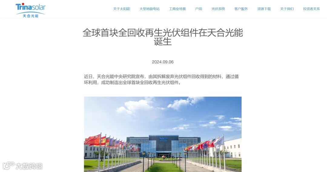 光伏回收产业发展合作中心立项,天合光能牵头,晶环嘉远、福莱特、永臻、中聚共同制造出了全球首块全回收再生光伏组件,并获得工信部第二届能源电子产业创新大赛一等奖。