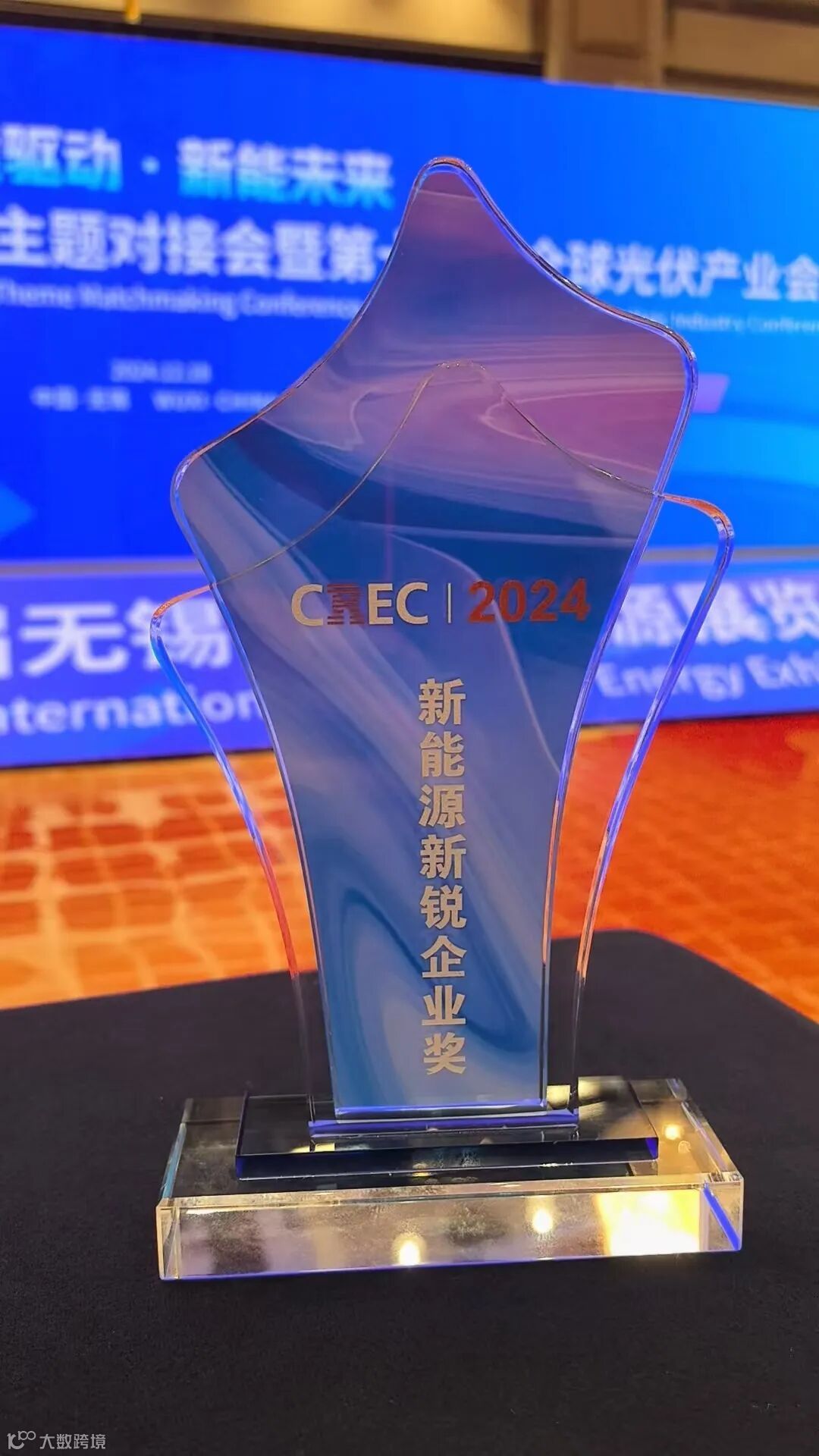 晶环嘉远凭借其在光伏回收领域的创新技术和显著市场影响力,与协鑫、华晟、晶澳、未来氢能等领军企业共同荣获中国(无锡)国际新能源大会暨展览会组委会(CREC)颁发的“2024新能源新锐企业奖”。