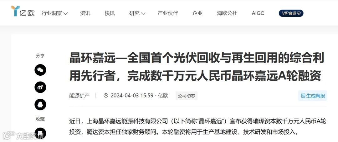 作为国内首家获风险投资的光伏回收企业,晶环嘉远在安徽凤阳建成的万吨级光伏回收产线已正式量产,产出包括再生玻璃、铝、6N级硅料、银锭、焊带及接线盒电缆在内的多种产品,经济效益显著。