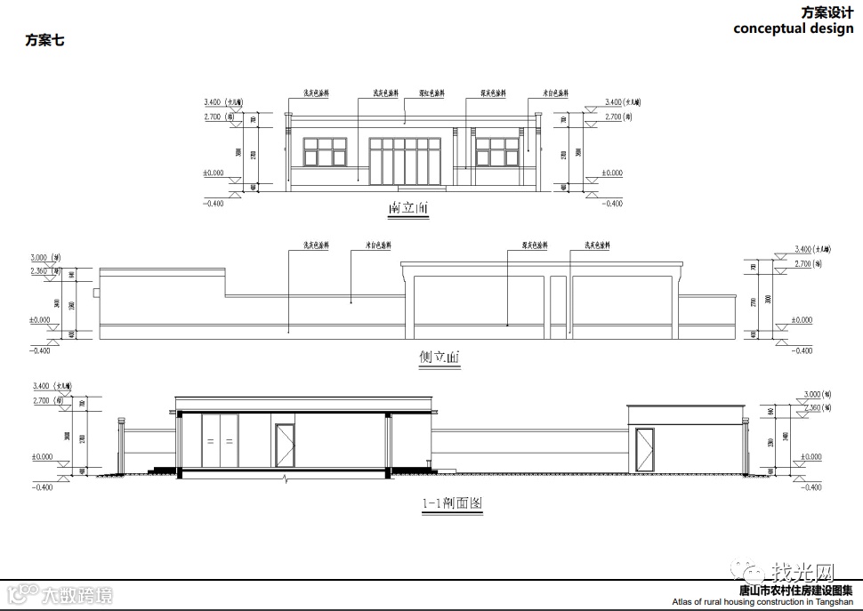 近日,河北唐山市住房和城乡建设局印发了《唐山市农村住房建设图集》,指导农村的别墅设计,其中可以看到很多设计图纸都在屋顶上安排了光伏电站。可见户用光伏电站在农村的普及,政府部门发布的设计图纸都推荐安装。
