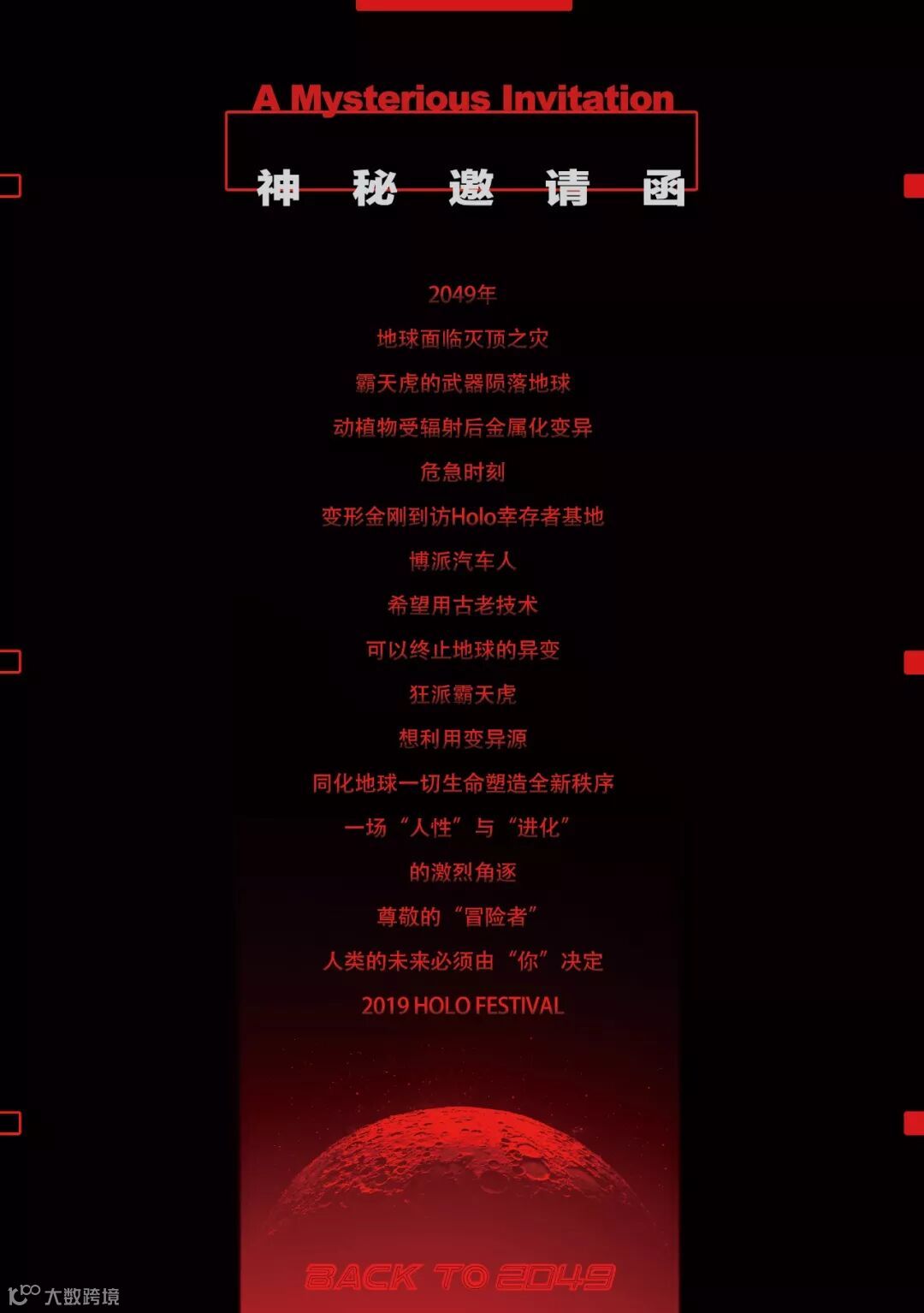 所有的购票玩家将会一起“穿越”到2049年的HOLO幸存者基地,全程参与到汽车人博派和霸天虎狂派的战斗中。