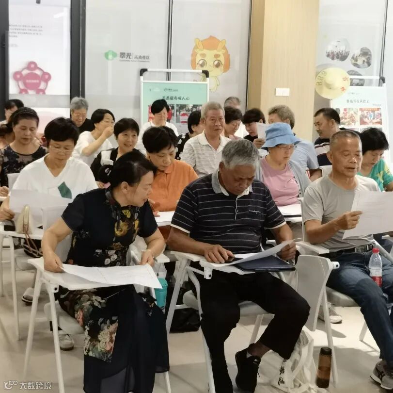 社区长者们正跟着声乐老师认真地练习发声和歌唱技巧。