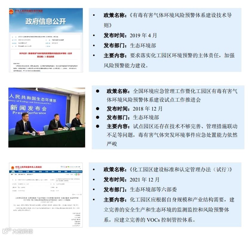 按照“第一时间发现、第一时间预警、第一时间响应”,“应急处理、研判预警、信息通报”的总体要求,化工园区需要摸清有毒有害气体的环境风险分布情况,落实具体企业环境风险主体责任,提升园区有毒有害气体环境应急处置能力,来建设有毒有害气体环境风险预警体系。