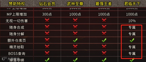 3.前期君临玩家是不缺元宝的,因为君临礼包送900w元宝,所以直接买好药硬刚怪物就可以了,君临的爆率也是最高的,所以发育起来很快就能无伤打怪了。