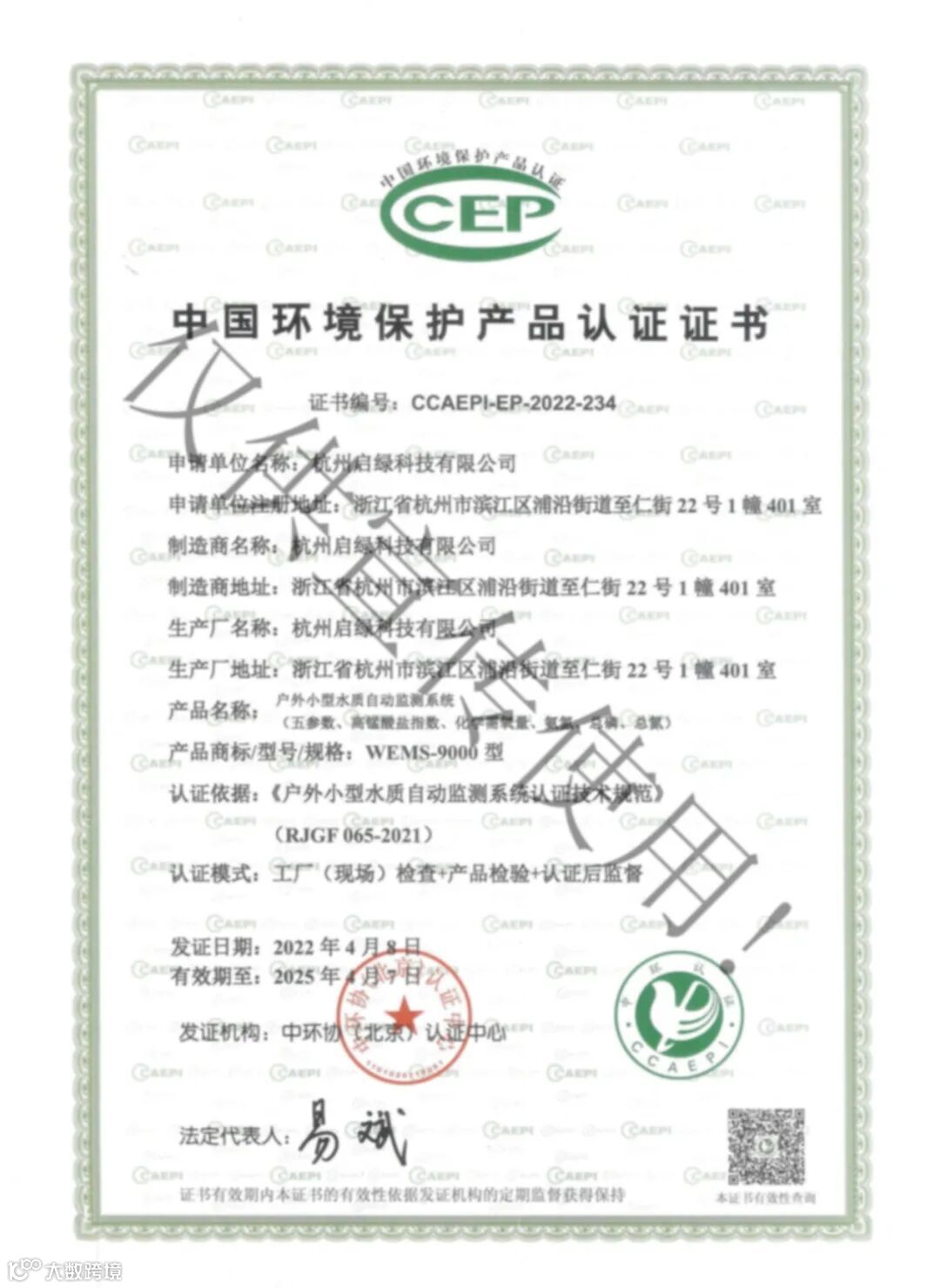 依据《户外小型水质自动监测系统技术要求及适用性检测作业指导书》(HJC-ZY73-2019),由春来科技旗下子公司—杭州启绿科技有限公司自主研发的可走入式户外小型水质自动监测系统顺利通过中国环境监测总站检测。