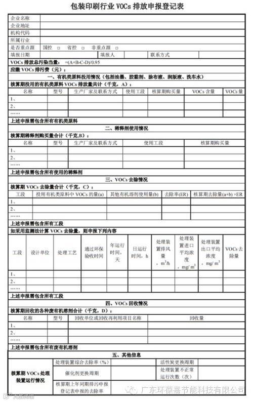 1. 排污者应在规定期限内向地方环境保护主管部门报送《试点行业VOCs排放申报登记表》(见下图),申报VOCs排放量。
