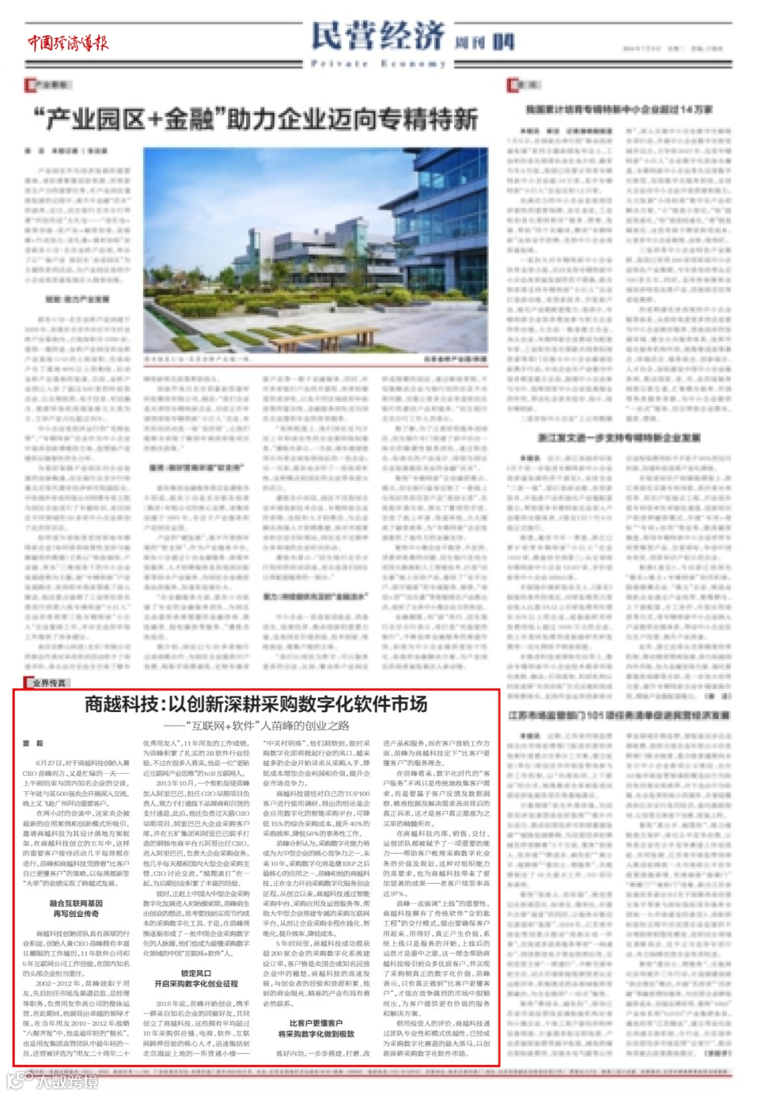 近日,中国经济导报刊发了《商越科技:以创新深耕采购数字化软件市场》一文,对商越科技进行了深度报道。通过团队专业性和模式优越性,商越已经成为采购数字化赛道的最大黑马。