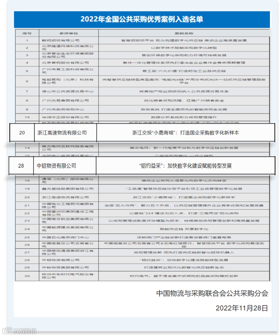 12月1日,中物联公共采购分会发布了关于“2022年度全国公共采购优秀案例”入选结果的通知。商越科技携浙江交投、中铝集团等多家企业成功当选“2022年度全国公共采购优秀案例”。