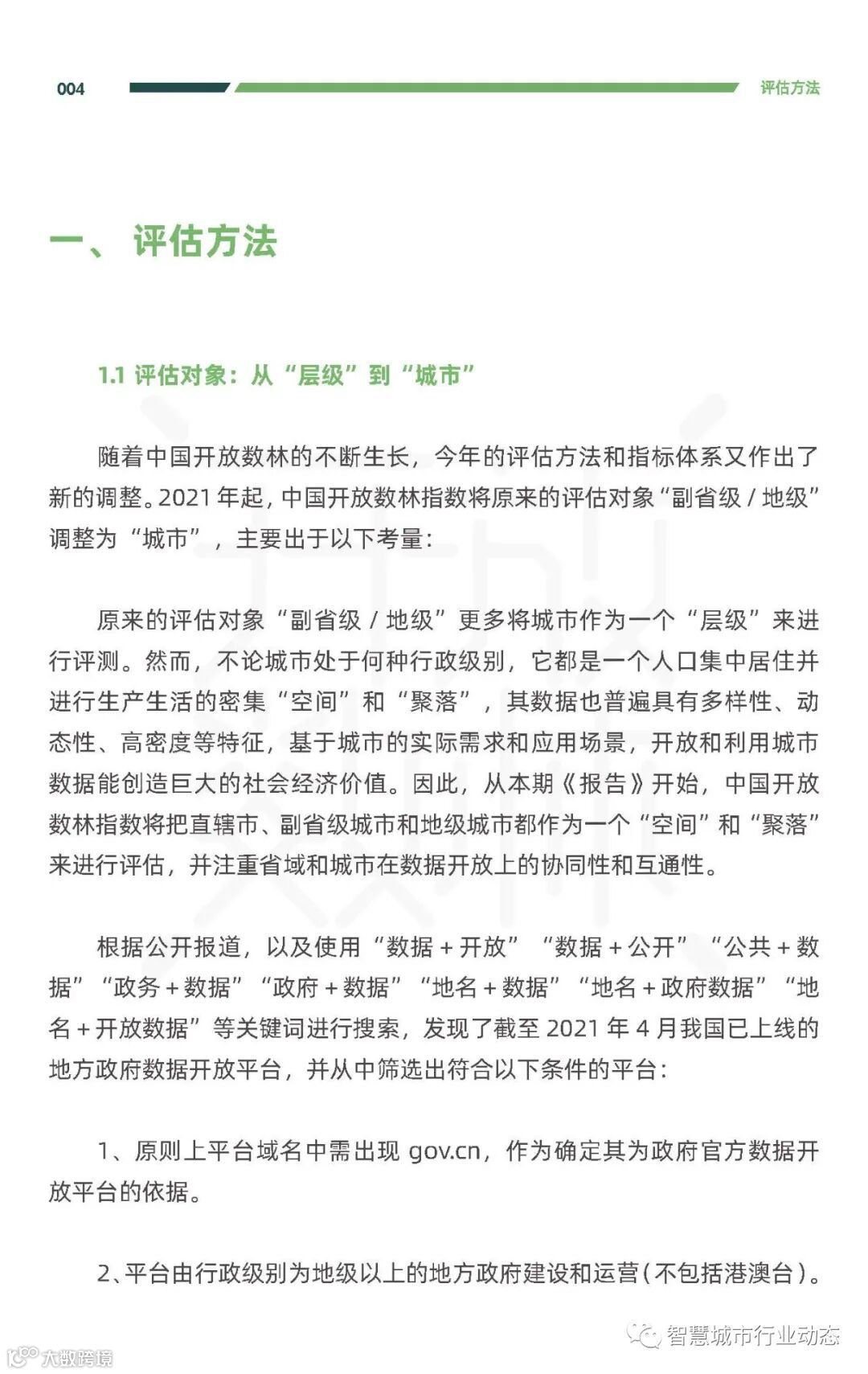 《中国地方政府数据开放报告——指标体系与城市标杆》由复旦大学数字与移动治理实验室于2021年发布。(报告)根据公开报道,以及使用“数据+开放” “数据+公开” “公共+数 据” “政务+数据”“政府+数据” “地名+数据”“地名+政府数据”“地 名+开放数据”等关键词进行搜索,发现了截至2021年4月我国已上线的 地方政府数据开放平台,并从中筛选出符合以下条件的平台: