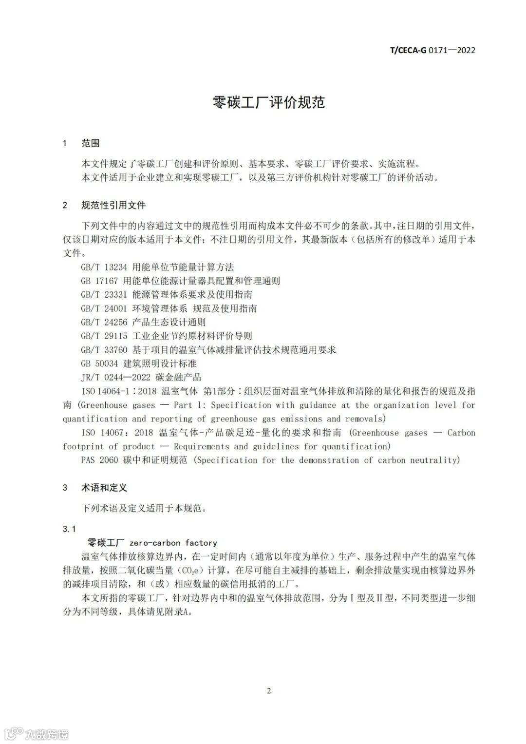 《零碳工厂评价规范》标准规定了零碳工厂创建和评价原则、基本要求、零碳工厂评价要求、实施流程。适用于企业建立和实现零碳工厂,以及第三方评价机构针对零碳工厂的评价活动。