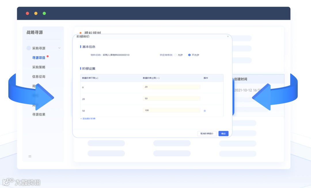 产品价值 :战略寻源上线“阶梯报价”模式,在分项报价等基础上进一步丰富报价模式,采购用户可自行定义阶梯,同时可控制供应商是否可修改,适配更多复杂寻源场景,减少采购风险,优化采购成本。