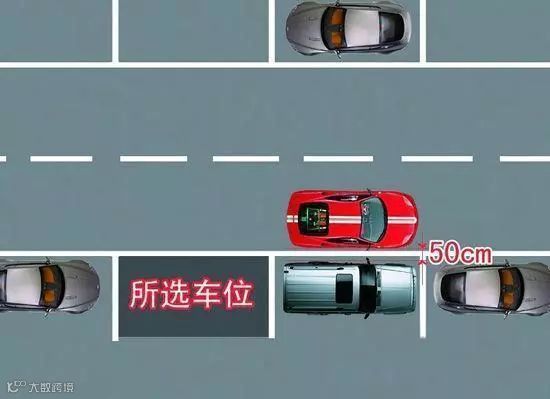 先将车停在前车左侧50厘米的地方,然后往后倒车,这时可以修正两车间距;