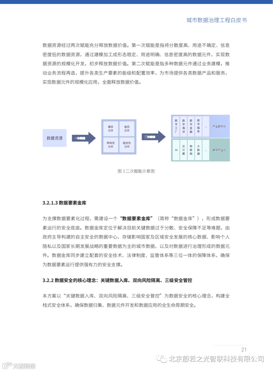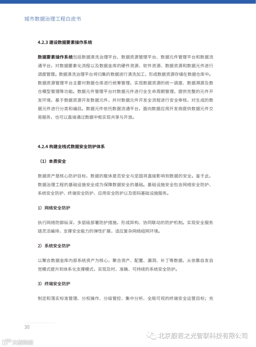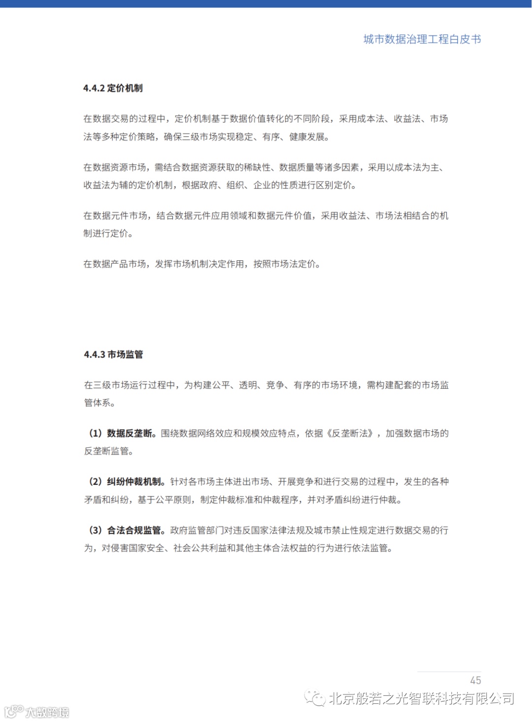 4、第四部分介绍解决方案并对架构设计方案进行整体阐述。构建了以数据归集系统、数据金库、数据要素操作系统、全栈式数据安全防护体系、数据治理标准体系和应用生态体系等为内容的技术体系方案;以组织机构、管理制度、法律法规和安全管理为内容的制度体系方案;以三级市场、定价机制和市场监管为内容的市场体系方案;以“发挥市场决定性作用、政府主导作用和企业主体作用”为内容的运行机制。